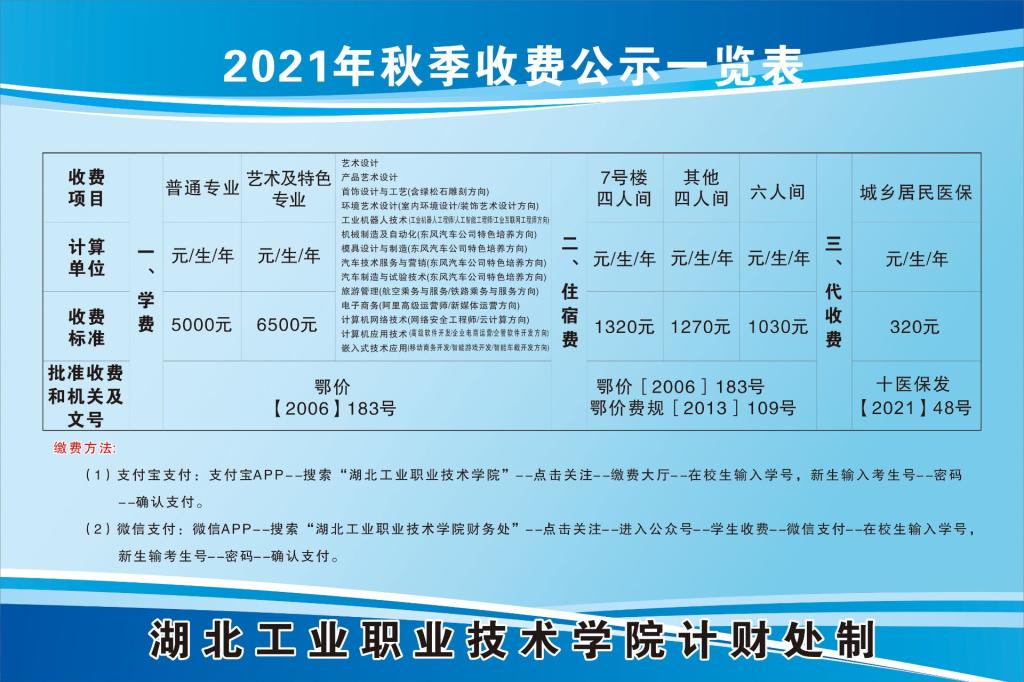 2021年秋季收费公示一览表