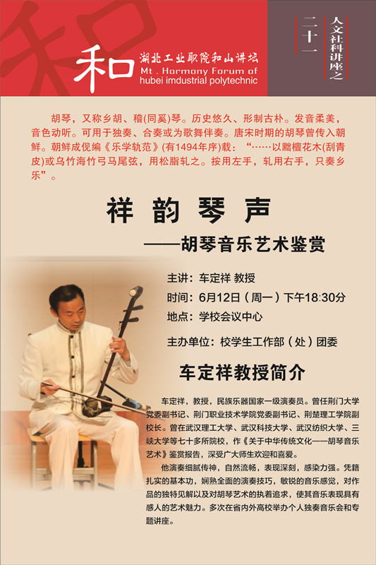 和山讲坛公告:祥韵琴声——胡琴音乐艺术鉴赏